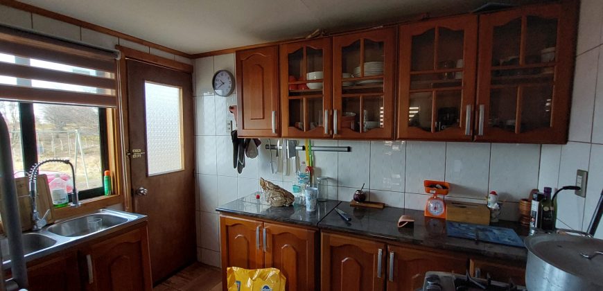 Casa regularizada y con recepción municipal, tiene 110 m2 construídos con living comedor, cocina amoblada, 1 baño amplio, sala de estar, 2 dormitorios (principal con walking clóset) calefacción, por calentadores.